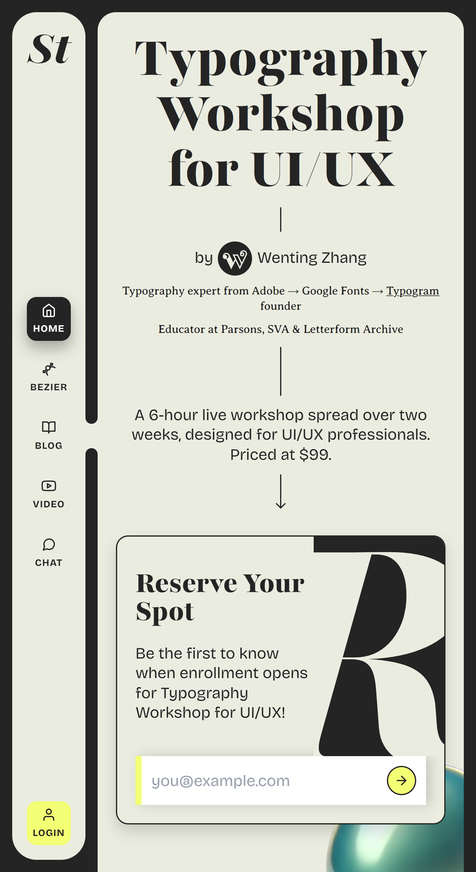 Type detail is an ongoing project by Wenting Zhang (@DesignJokes), inspired by the great discontent's 100 day project and Stephen Coles's great book The Anatomy of Type. The rule and goal are to annotate a web typeface each day, pointing out the beautiful details of the typefaces that one often takes for granted.